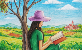 This poem shows a girl happily reading under a tree on a sunny day. Her dress and hat match the beauty around her as her imagination soars with each page. It highlights the quiet adventures and dreams found in books… Read More ›