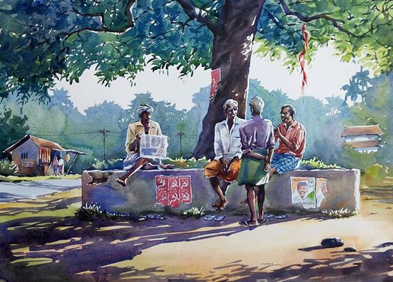 रात के आठ बज रहे थे और चौपाल में राजेश्वर पहुँचा तो देखा गाँव के सरपंच साहब और कुछ लोग हुक्का पी रहे है और फसल की पटवन के बारे में  चर्चा कर रहे है |  इस बार बारिस कम होने के कारण फसल पानी के बिना बर्बाद हो रहे है |