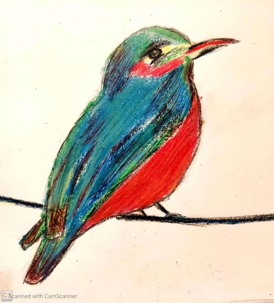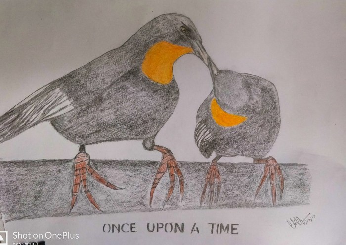 सुबह उठ कर देखा तो वह उस कार्टून के बक्से में नहीं था |.. बस, कुछ टूटे पंख बिखरे थे और थी उसके साथ गुज़ारे गए खट्टी मीठी यादें |