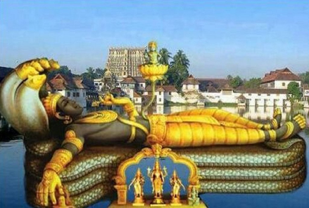 इस प्रतिमा में भगवान विष्णु शेषनाग पर शयन मुद्रा में विराजमान हैं। मान्यता है कि तिरुअनंतपुरम नाम भगवान के ‘अनंत’ नामक नाग के नाम पर ही रखा गया है।