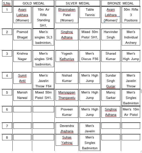Our 5 golds, 8 silvers and 6 bronzes are spread across shooting, badminton, javelin, table tennis. High jump, discuss throw and archery.