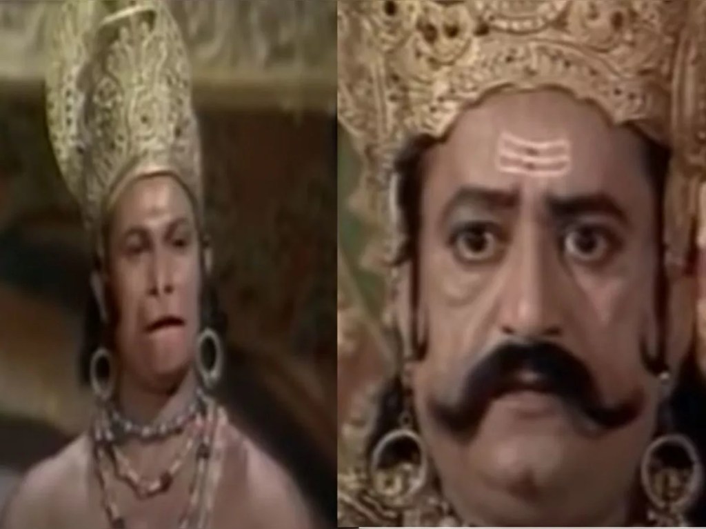 Because of the smash ,the earth started trembling . The crown on the Ravan’s head, that fell to the ground . Angad grabbed the crown and tossed them, and Ravan quickly put the others back on his head.