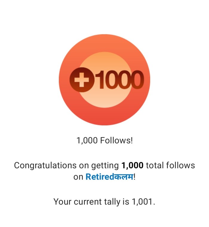 It is a matter of great pleasure that after my 2 year sincere efforts in Blogging;  I achieved something that I would like to share with you all. Yes, I have posted 1600  Blogs with 250 k views and 1001 followers to date.
