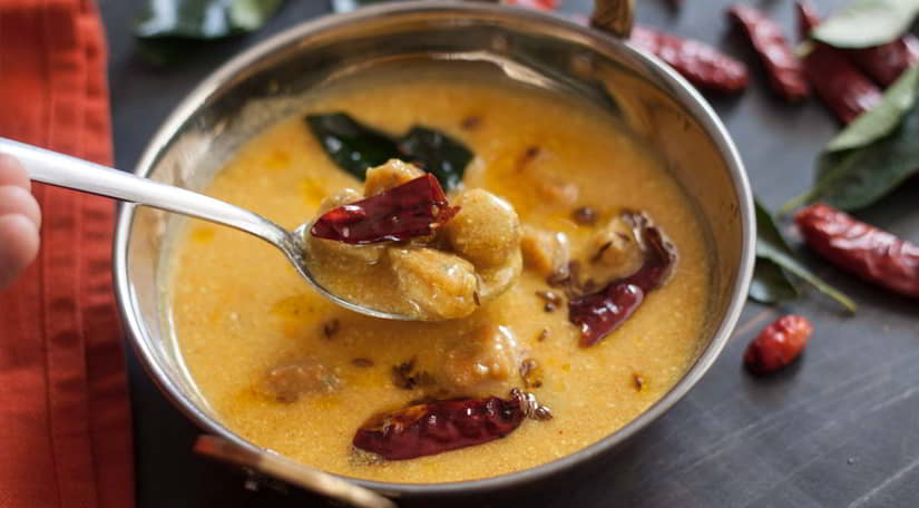 Kadhi Badi: A delightful combination of fried gram flour dumplings (badi) in a yogurt-based curry (kadhi),