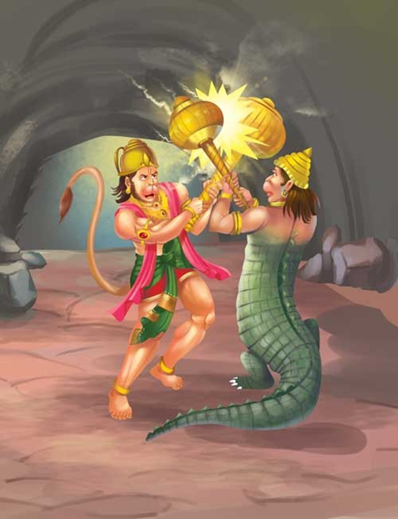 A fierce battle ensued, with neither combatant willing to yield. Hanuman, puzzled by the uncanny resemblance and strength of his opponent, eventually overpowered Makardhwaj.